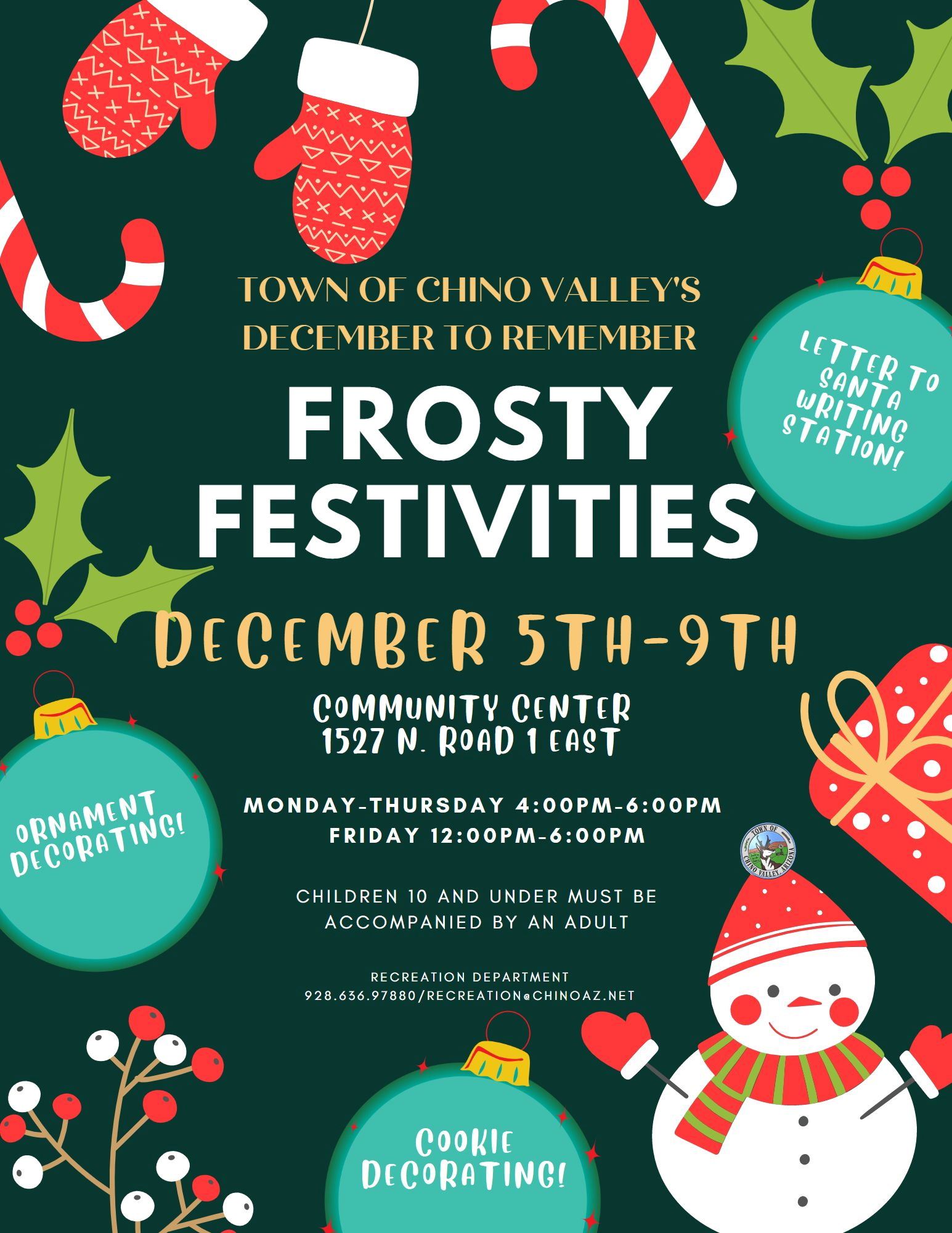 Recreation Department invites you to participate in Frosty Festivities beginning December 5, 2022. Get your whole family involved and create lasting memories!